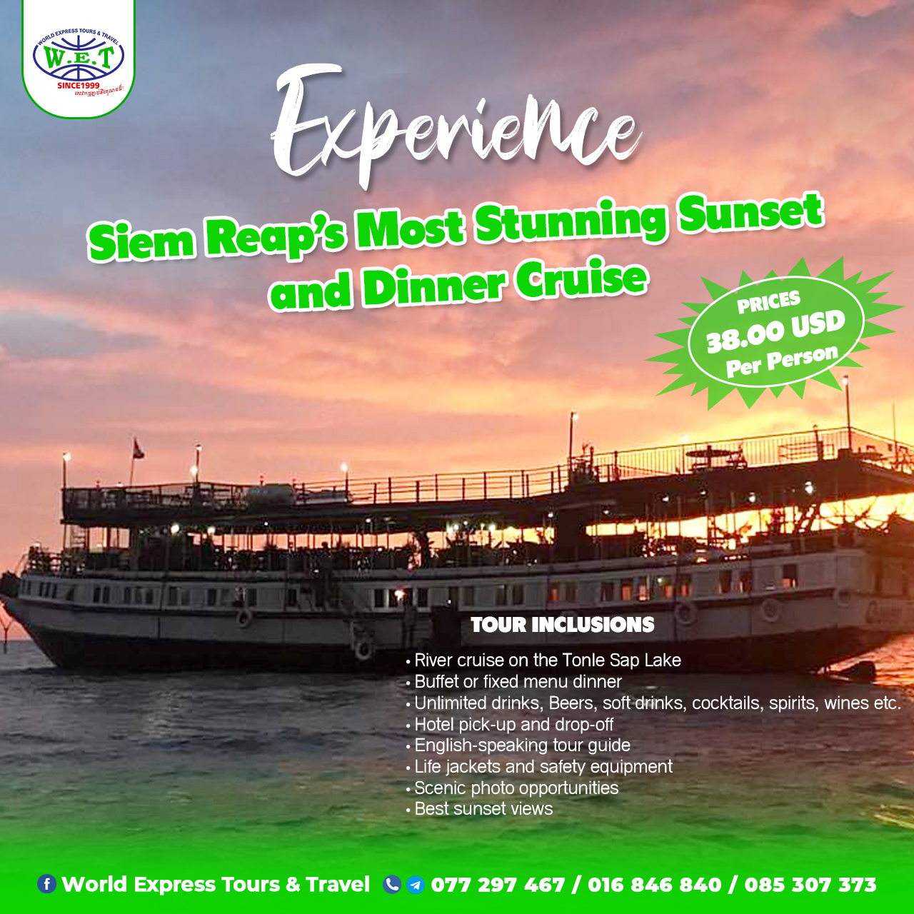 Experience the real Cambodia with a sunset cruise that blends stunning lake views, authentic floating village life, and exceptional onboard…